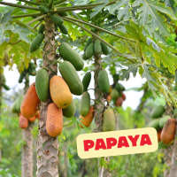 Papaya (Carica papaya) is grown in Mauritius all year round, but its most abundant harvest occurs during the warmer, rainy months, from October to March. This orange or yellow-fleshed fruit has a juicy, sweet taste and has many health benefits, as it is rich in vitamin C, vitamin A and antioxidants. Papaya is eaten fresh, added to fruit salads, or used in smoothies, juices and desserts. The seeds are also edible, and can be used as a spice due to their slightly pungent taste.