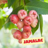Jamalac, also known as Java apple or rose apple (Syzygium samarangense), is usually harvested in Mauritius between November and February, during the summer months. This crisp, bell-shaped fruit has a tart, slightly sweet, watery texture, and is often eaten as a refreshing snack or in salads.