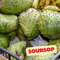 Soursop, or corosol (Annona muricata), is usually harvested in Mauritius between November and March, when the tropical climate is most favorable for its development. This large, half-head-sized fruit with a spiky shell has a juicy, sweet-sour flesh and is eaten fresh, in juices or as an ingredient in desserts.